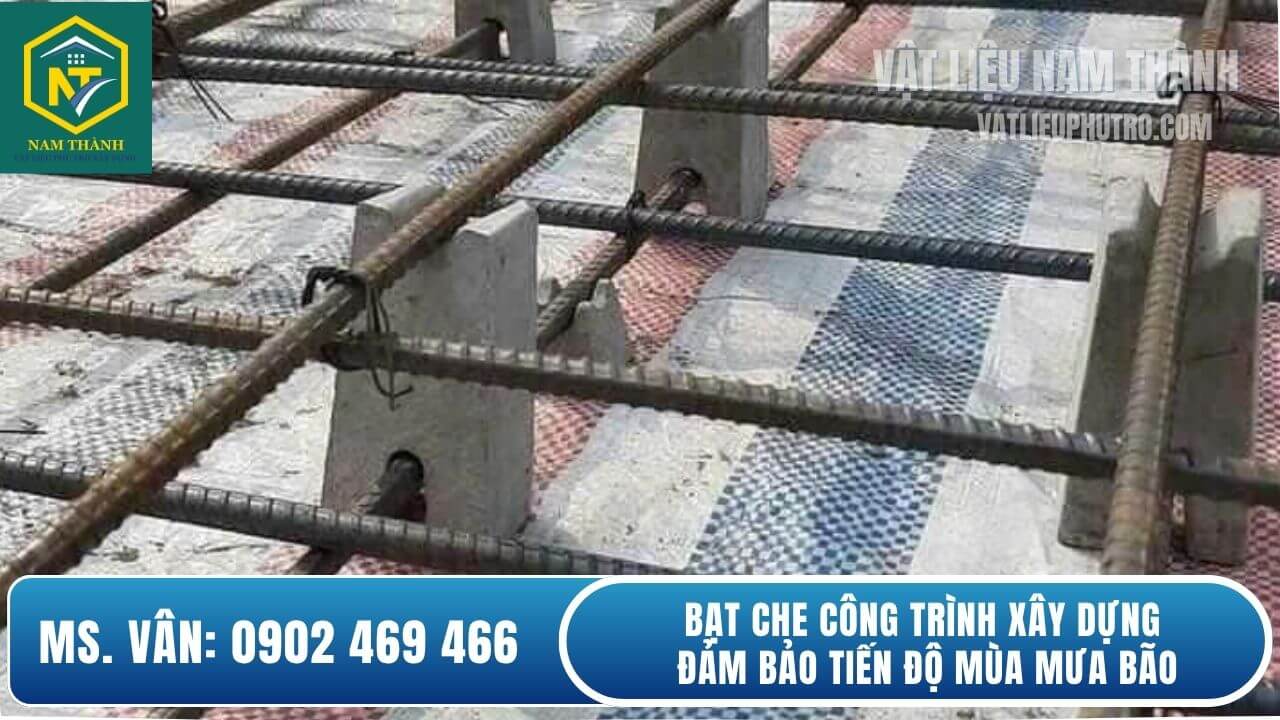 Đối với những công trình khởi công vào mùa mưa bão, mưa kéo dài là một trong những yếu tố thời tiết dễ gây gián đoạn thi công. Nếu không có biện pháp che chắn kịp thời, công trình rất dễ bị chậm tiến độ, giảm chất lượng và phát sinh thêm nhiều chi phí ngoài dự kiến. Các loại vật liệu như xi măng, cát, đá, thép hay thiết bị điện đều rất dễ hư hỏng, rửa trôi khi tiếp xúc với nước mưa. Đặc biệt, những hạng mục được thực hiện ngoài trời yêu cầu bề mặt khô ráo như đổ bê tông nếu gặp mưa sẽ khó thi công đúng kỹ thuật, dễ gây bong tróc, nứt nẻ, giảm độ bền về sau. Ngoài ra, việc nước ngấm vào bê tông đang thi công có thể làm giảm độ kết dính. Vì vậy, việc sử dụng bạt phủ công trình là yếu tố quan trọng để bảo vệ cả vật tư lẫn chất lượng từng hạng mục thi công.