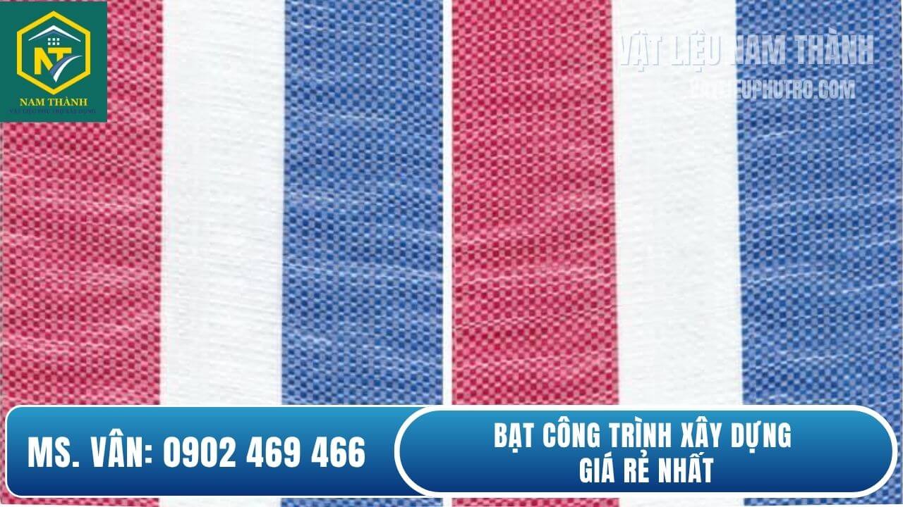 Bạt sọc 3 màu hay bạt phủ công trình là vật liệu được sử dụng rộng rãi là loại bạt được sử dụng rộng rãi trong các công trình dự án, công nghiệp và nông nghiệp. Loại bạt này được làm từ nhựa polyethylene (PE) có khả năng chống thấm tốt, độ bền cao. Do giá thành rẻ nên bạt mỏng, trọng lượng nhẹ, có 3 kích thước 3.8m, 4m, 6m thích hợp cho các công trình ngắn ngày hoặc sử dụng 1 lần để lót nền đổ bê tông. Với thiết kế sọc trắng - xanh - đỏ bạt rất dễ nhận biết từ xa, đóng vai trò như màu cảnh báo an toàn rất phù hợp cho công trường thi công nằm trong khu vực đông dân cư, gần đường giao thông.