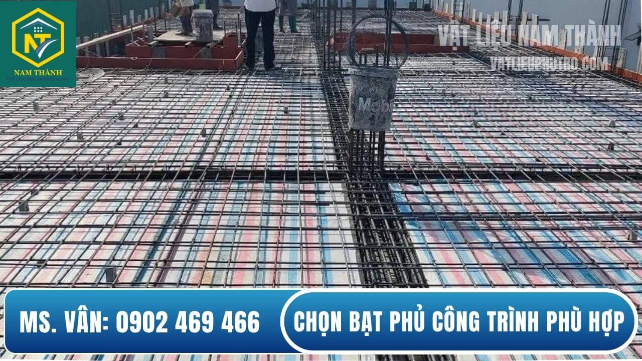 - Với các công trình lớn nên ưu tiên bạt loại khổ 4m hoặc 6m để phủ kín toàn bộ sàn đổ bê tông tránh phải chắp vá hay nối ghép gây rách, xô lệch.