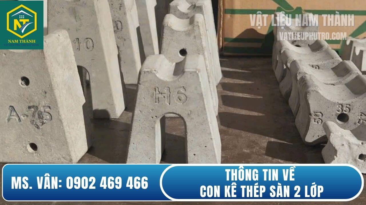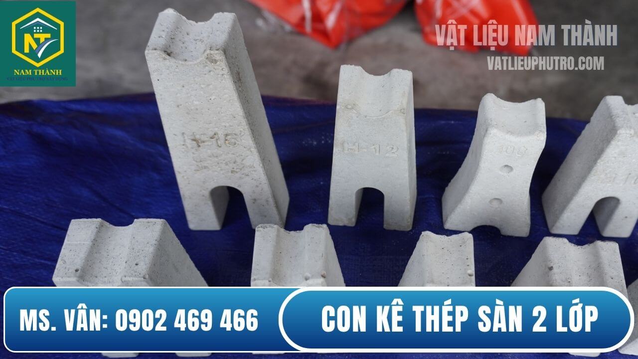 Con kê thép sàn 2 lớp đổ bê tông là vật tư dùng trong thi công sàn, móng đổ bê tông, có nhiệm vụ cố định lớp thép trên và lớp theo dưới theo đúng yêu cầu thiết kế. Nhờ khả năng nâng đỡ của con kê, lớp thép không bị chạm đất hoặc đẩy lên khi đổ bê tông tươi, đảm bảo lớp bảo vệ đúng độ dày và quy trình kỹ thuật. Con kê là vật liệu được sử dụng rộng rãi tại công trình dân dụng, nhà ở cao tầng, công trình dịch vụ và công nghiệp,...
